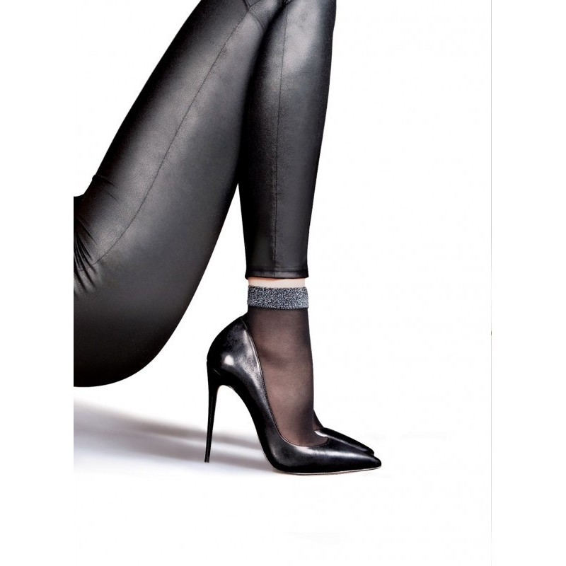 Juodos moteriškos kojinaitės su blizgiu krašteliu.