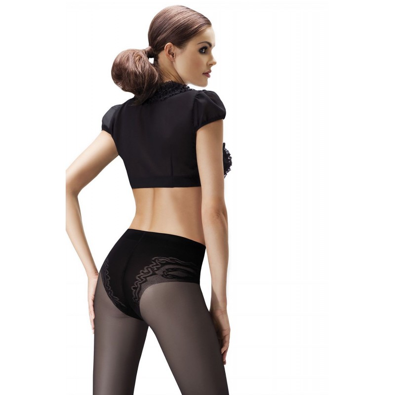 Pėdkelnės su 100 den modeliuojančiomis trikampėmis kelnaitėmis. Siūlė plokščia. Medvilninis įsiuvas.