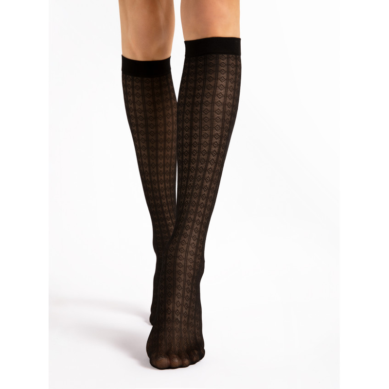 Puskojinės Fiore Diamond Crush – plonos puskojinės su subtiliomis juostelėmis. Platus ir patogus, lygus rankogalis. Jas galima derinti prie daugelio klasikinių įvaizdžių. Su jomis taip pat pasieksi „mokyklinį įvaizdį“.
