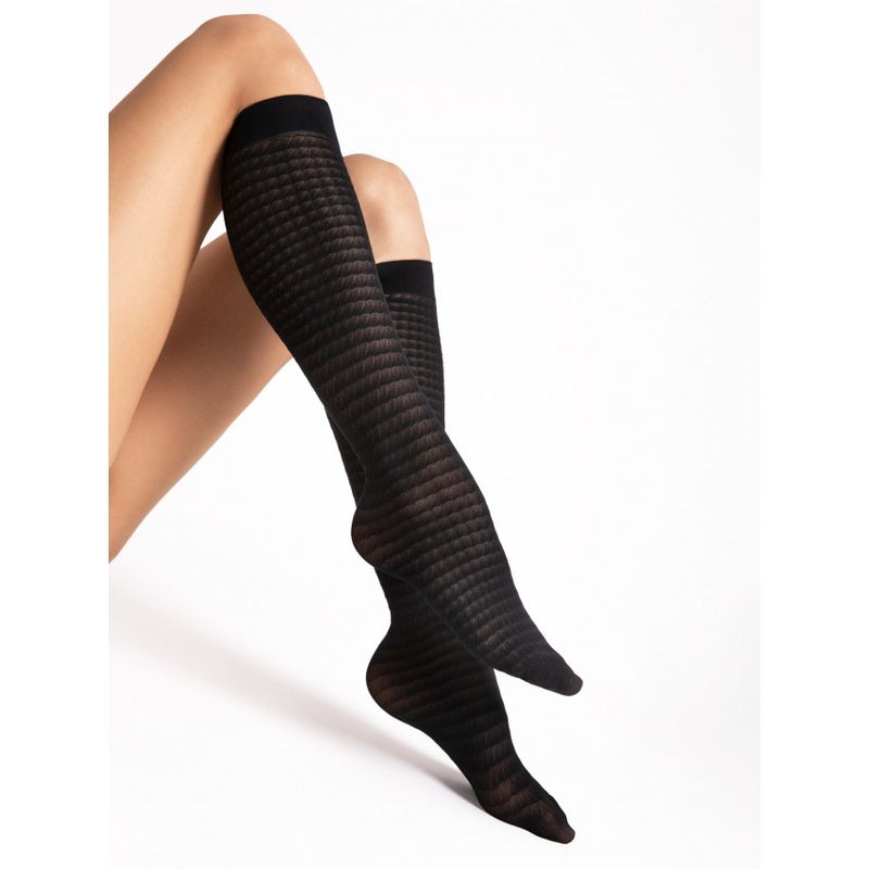Puskojinės Fiore Twilla – tai puskojinės, kurios mėgsta būti matomos. Struktūrinis raštas ir elegantiškas ilgis leidžia joms puikiai atsiskleisti deriniuose su atidengta kulkšnimi – prie mokasinų, balerinų ar net aukštakulnių. Subtilios, bet išskirtinės. Puikiai tinka pereinamajam sezonui, kai svarbu ir stilius, ir komfort